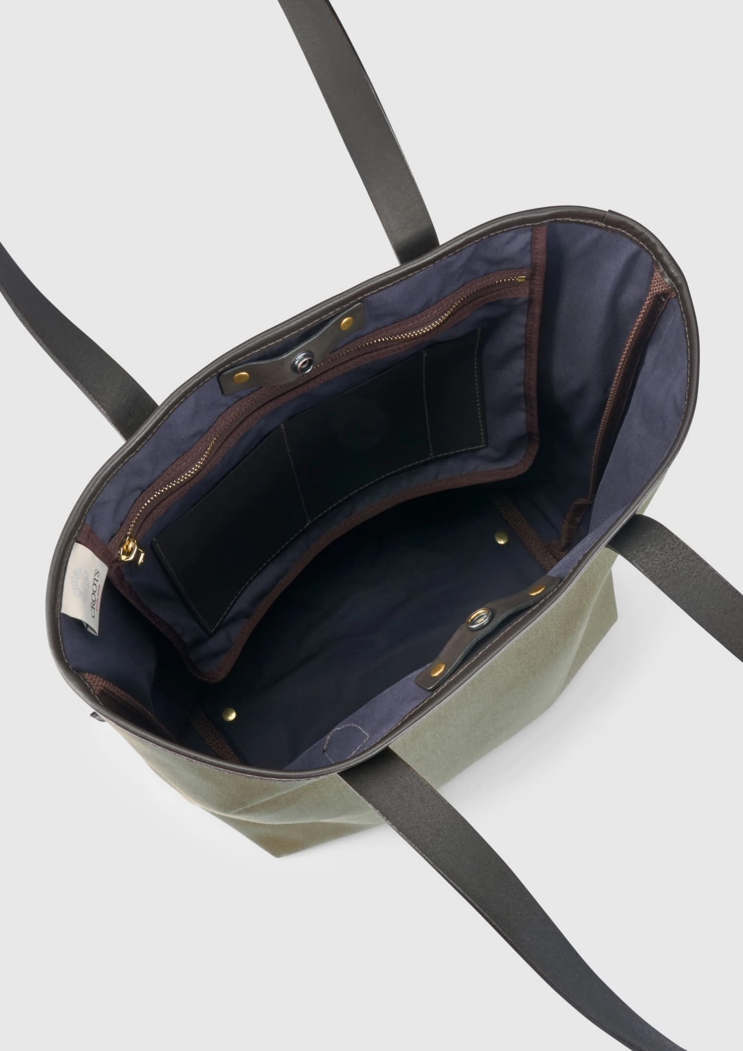 Created exclusively by Croots England for Gloverall. The Tote is a classic shopper-style bag, featuring leather top handles, which can be set to carry over the shoulder or by hand.