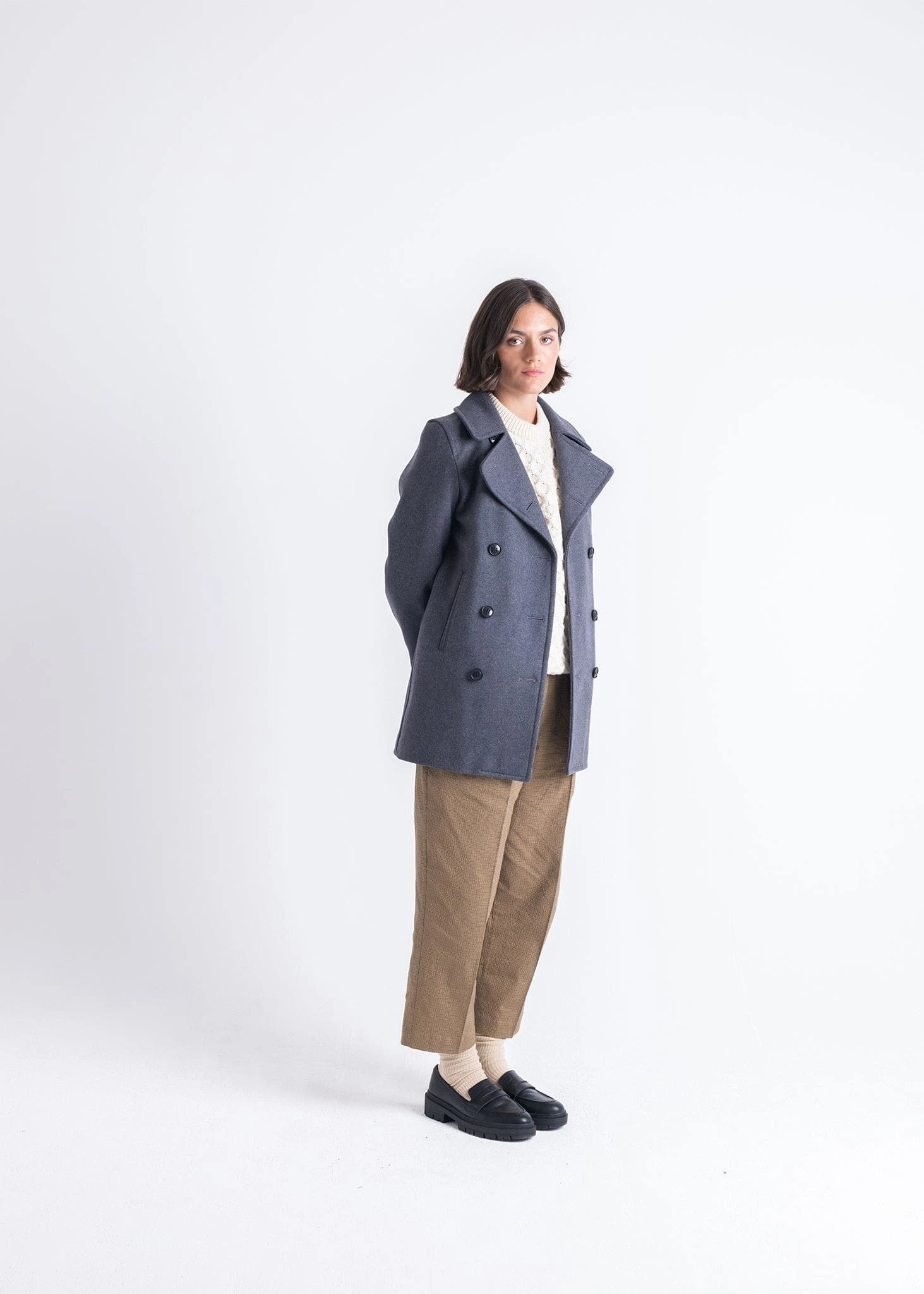 Make waves this winter in our naval-inspired Ellen Peacoat. Designed in a super soft cashmere blend, our Ellen carries the codes of a traditional peacoat including oversized lapels and double-breasted front with the customary flap pockets removed for a sleeker modern finish. A chic and contemporary classic, join the style squad this season with Ellen in your outerwear armour.