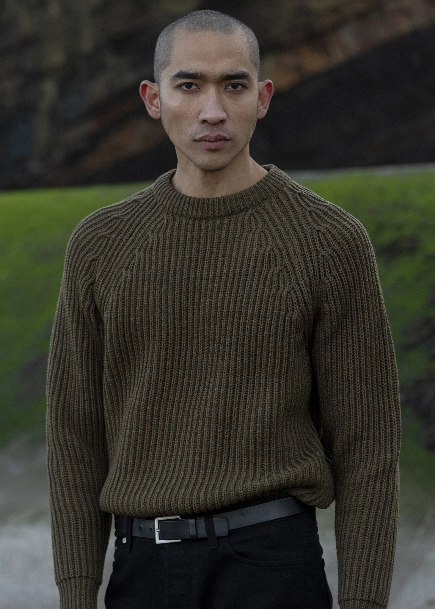This regular fit ribbed fisherman jumper is crafted from 100% Merino wool.