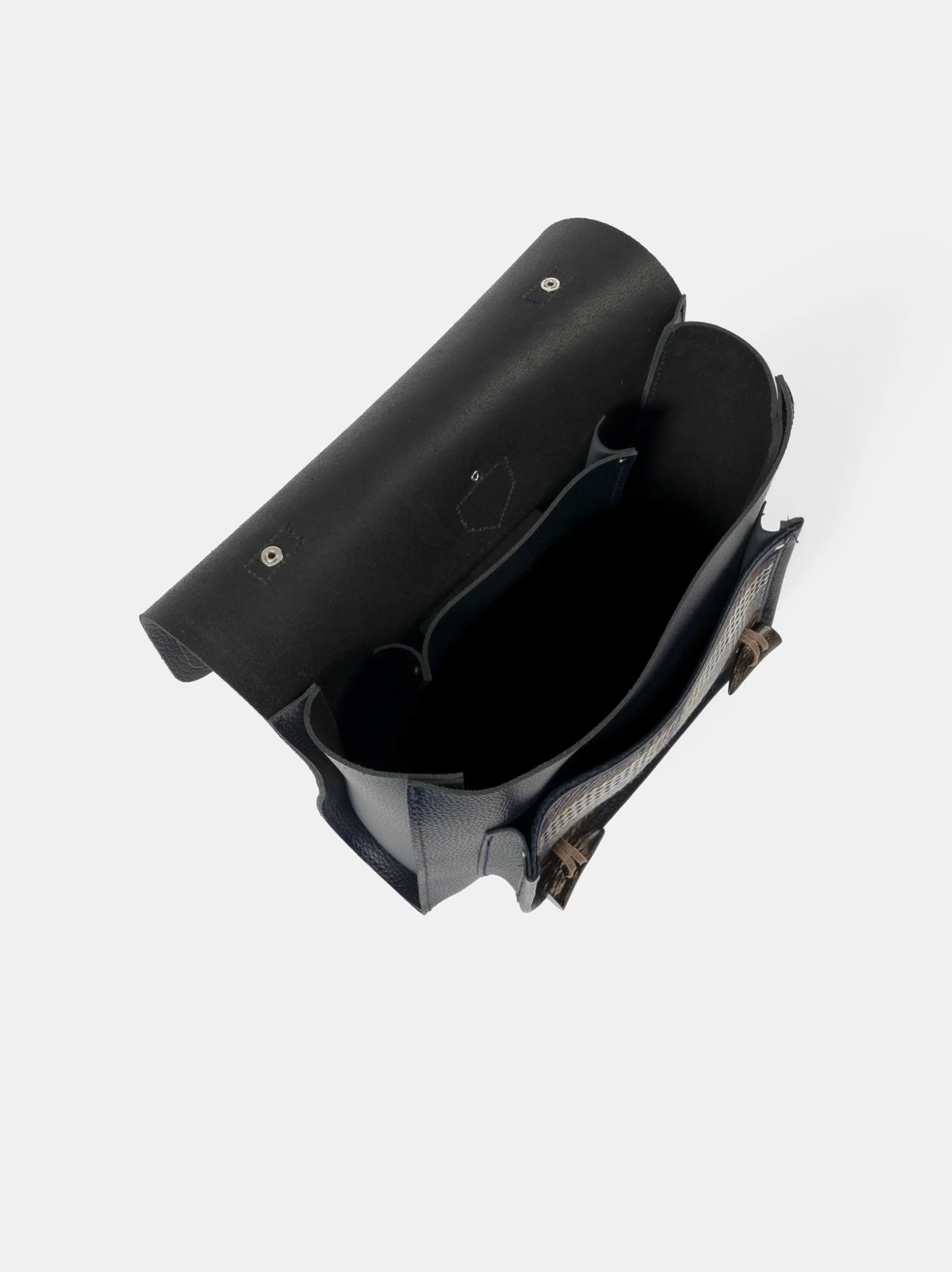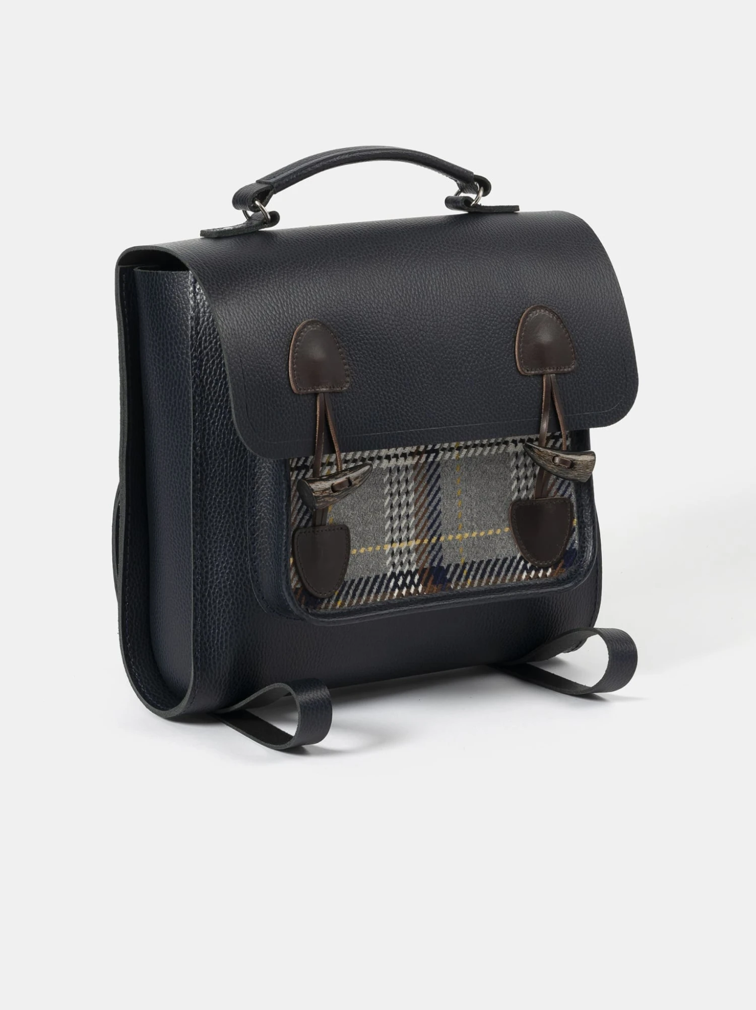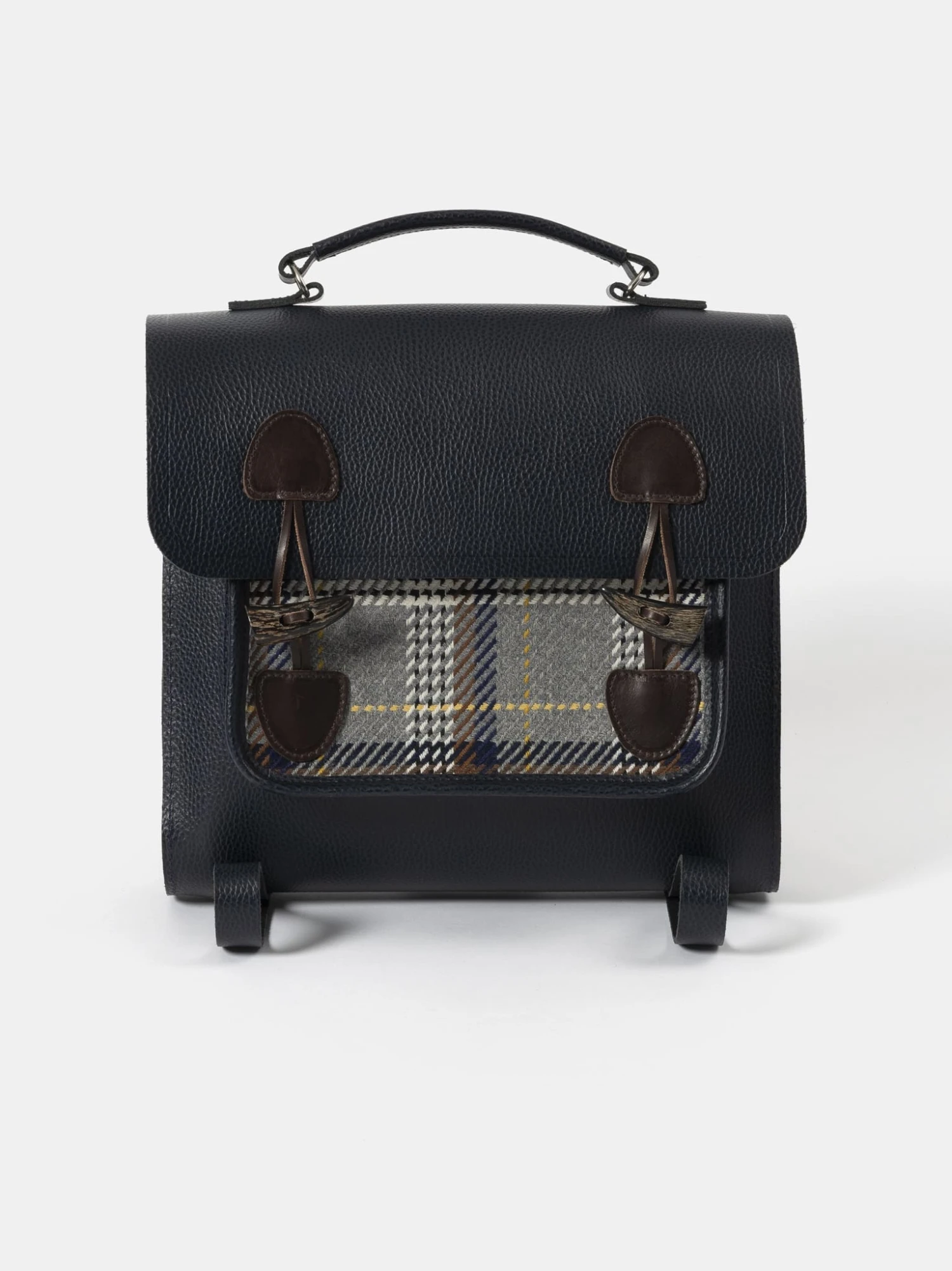 Created exclusively as part of the Gloverall and Cambridge Satchel collaboration, The Messenger Backpack is made in England from 100% leather. The same high-quality leather is used in the shoulder strap, which can be adjusted to allow the bag to be carried on the shoulder or across the body. Adding even greater flexibility of wear, the bag features a top handle. Complete with a Grey Check fabric, made from a twisted worsted yarn, two horn toggles and leather loop closures, this bag features both brand’s logos carefully embossed on the reverse as a mark of quality.