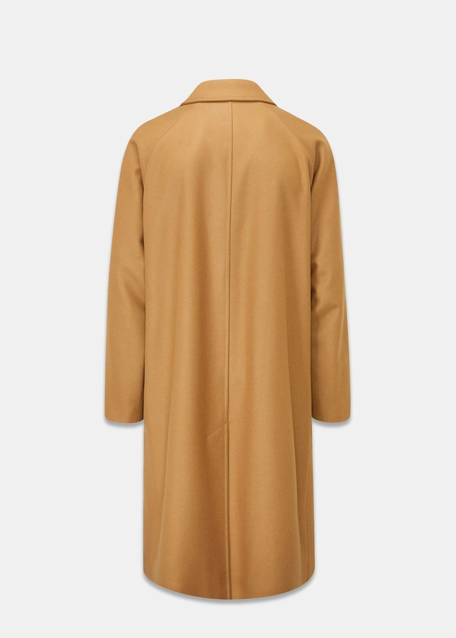 The overcoat is crafted from a beautiful wool cashmere mix featuring a single-breasted button front fastening. The new style of a raglan sleeve creates a draped fit.