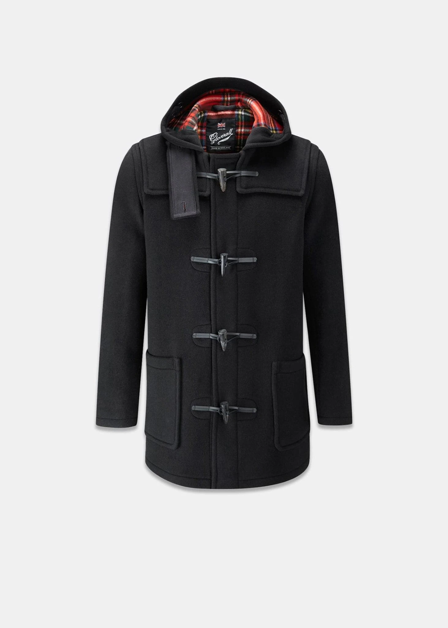 The quality trademarks of the original duffle design are present in the pancake hood, buffalo horn toggles and leather loop fastenings.