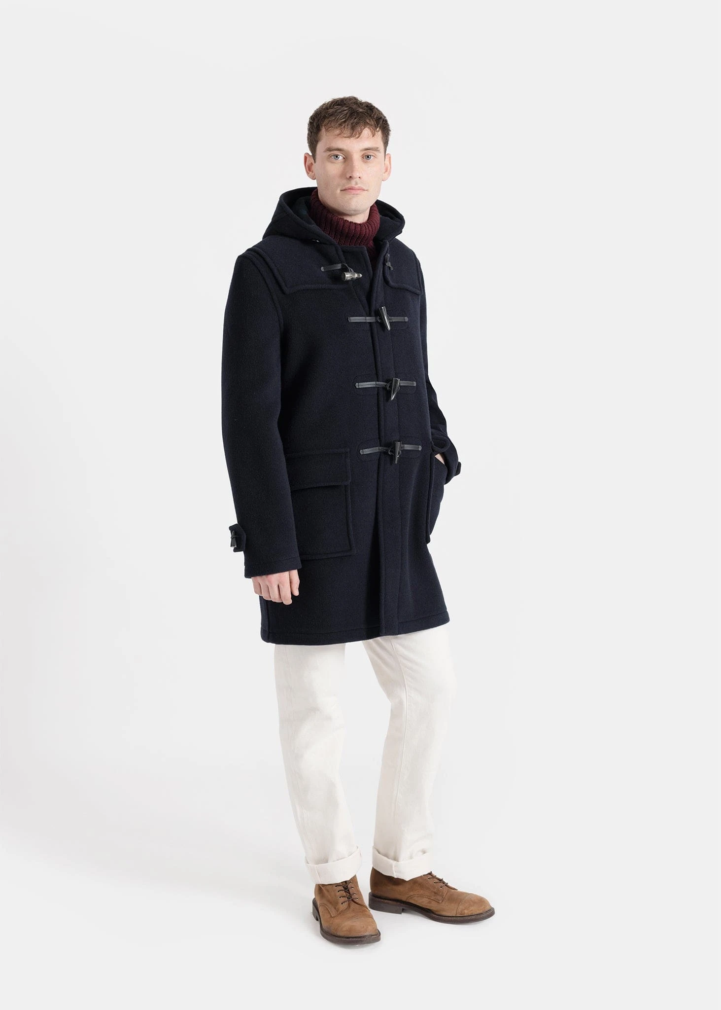 The Morris duffle takes a nod to our heritage being named after the Gloverall founding family. It reaches knee-length, and will keep you cosy right up to the button-adjusted hood.