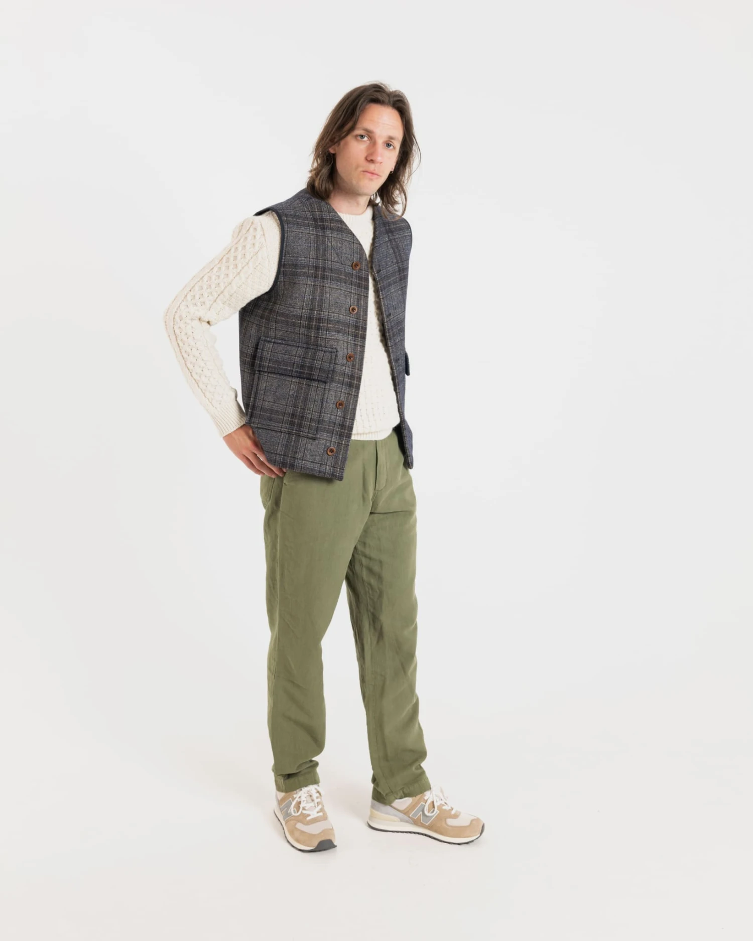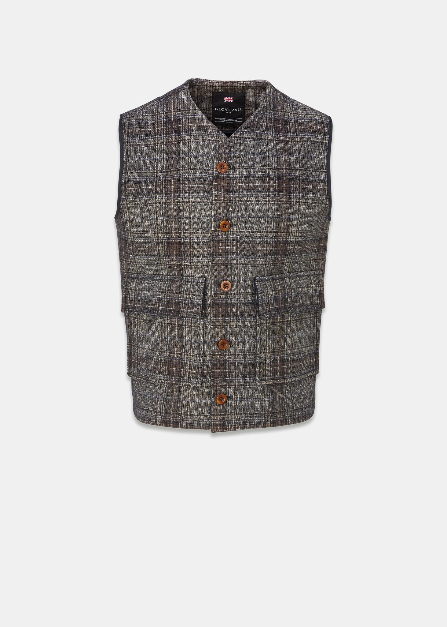 Offering a layer of warmth without the heaviness of an overcoat, our Roger Check Gilet is made from a double-faced wool mix fabric with a subtle brown check outer and plain navy interior. Featuring a V at the neck, two large patch pockets and a three-buttoned front, this style is perfect to wear over knitwear or under a coat.