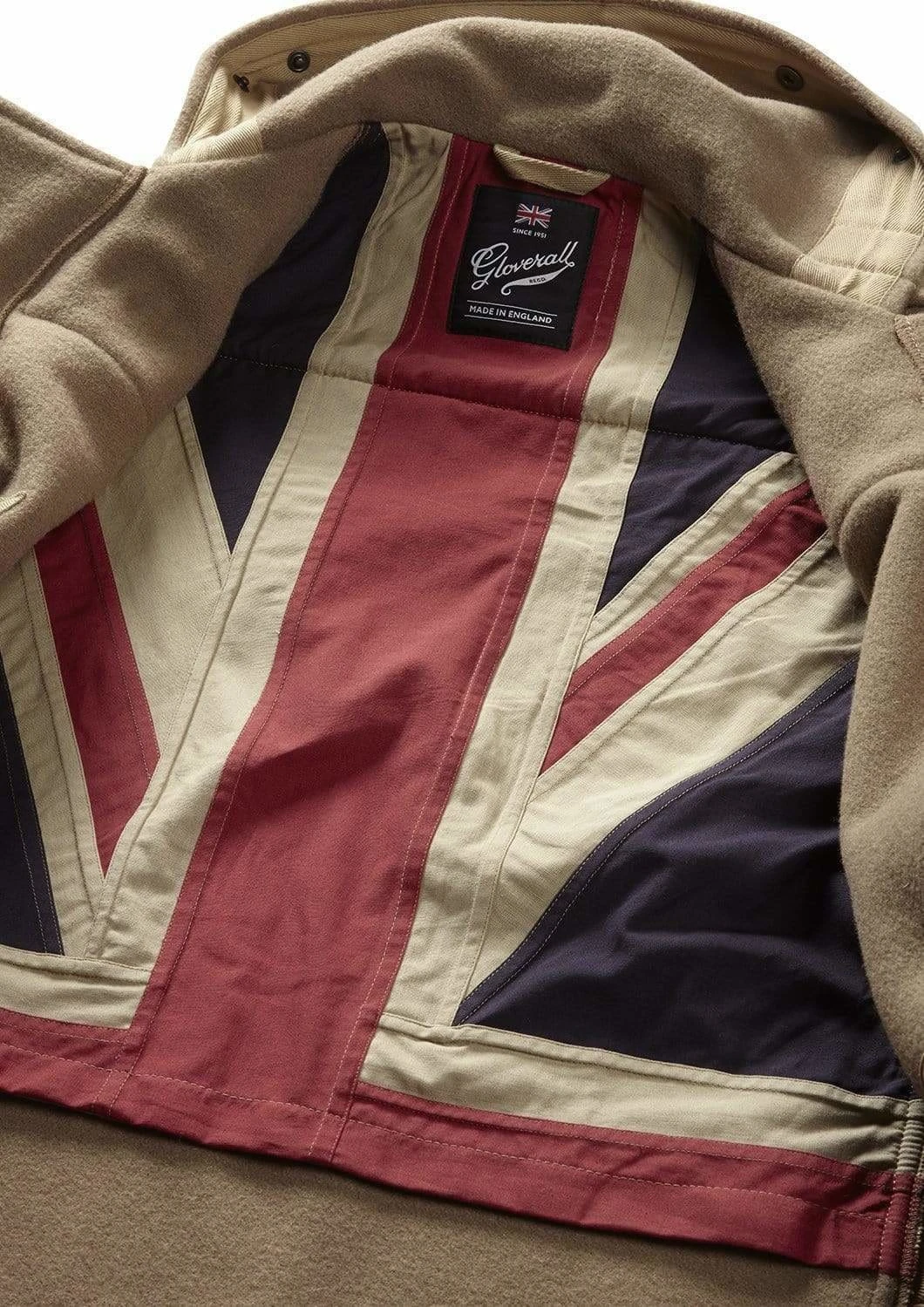 It features the signature wooden toggles and jute rope fastenings, and the interior is partially lined with a Union Jack pattern.