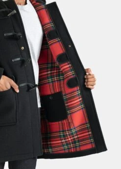 With its tartan interior and sturdy fixed shoulder cape, this duffle is equal parts eye-catching and functional.