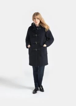 Layer this women’s duffle coat over textured knitwear for a luxurious winter look.
