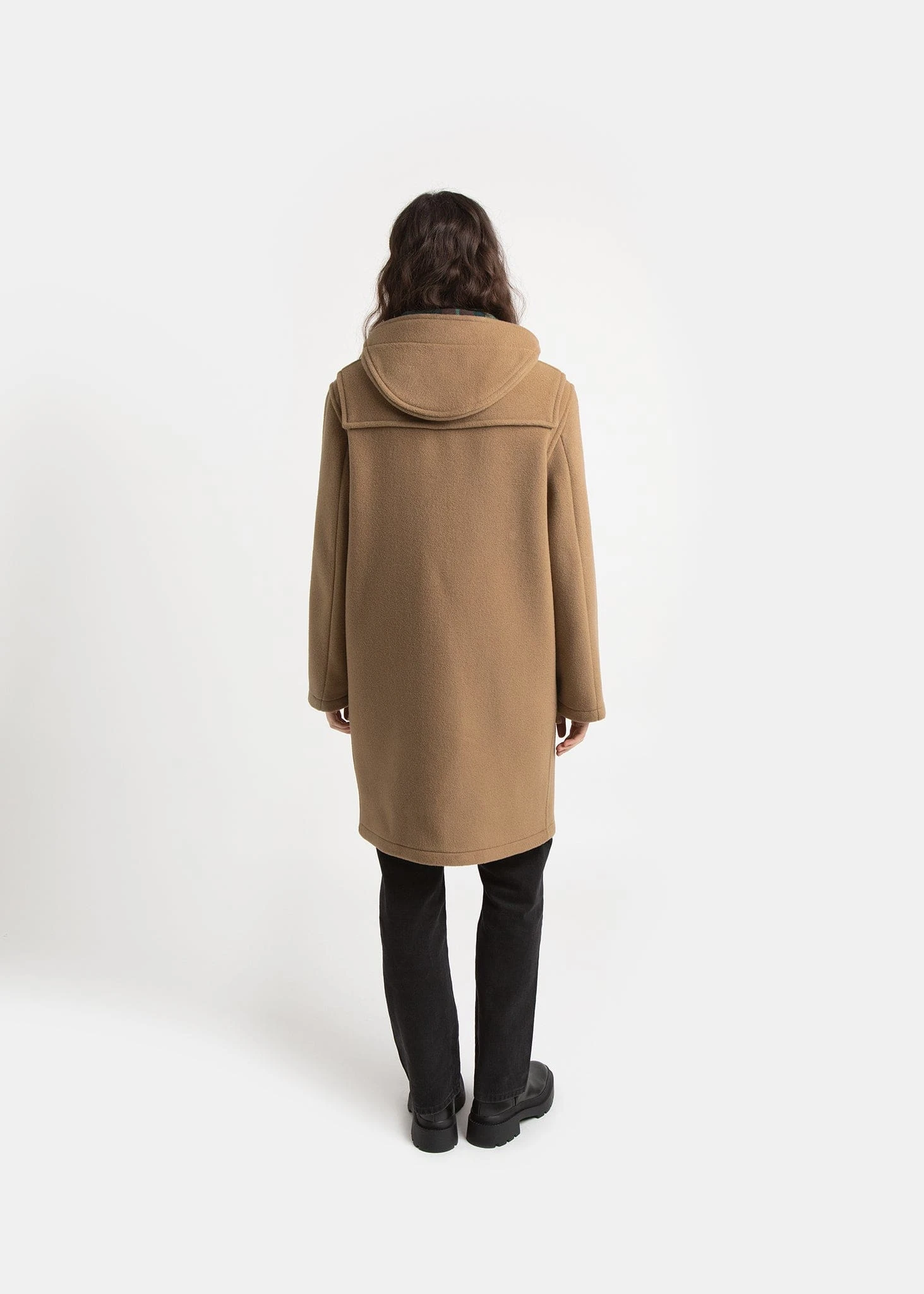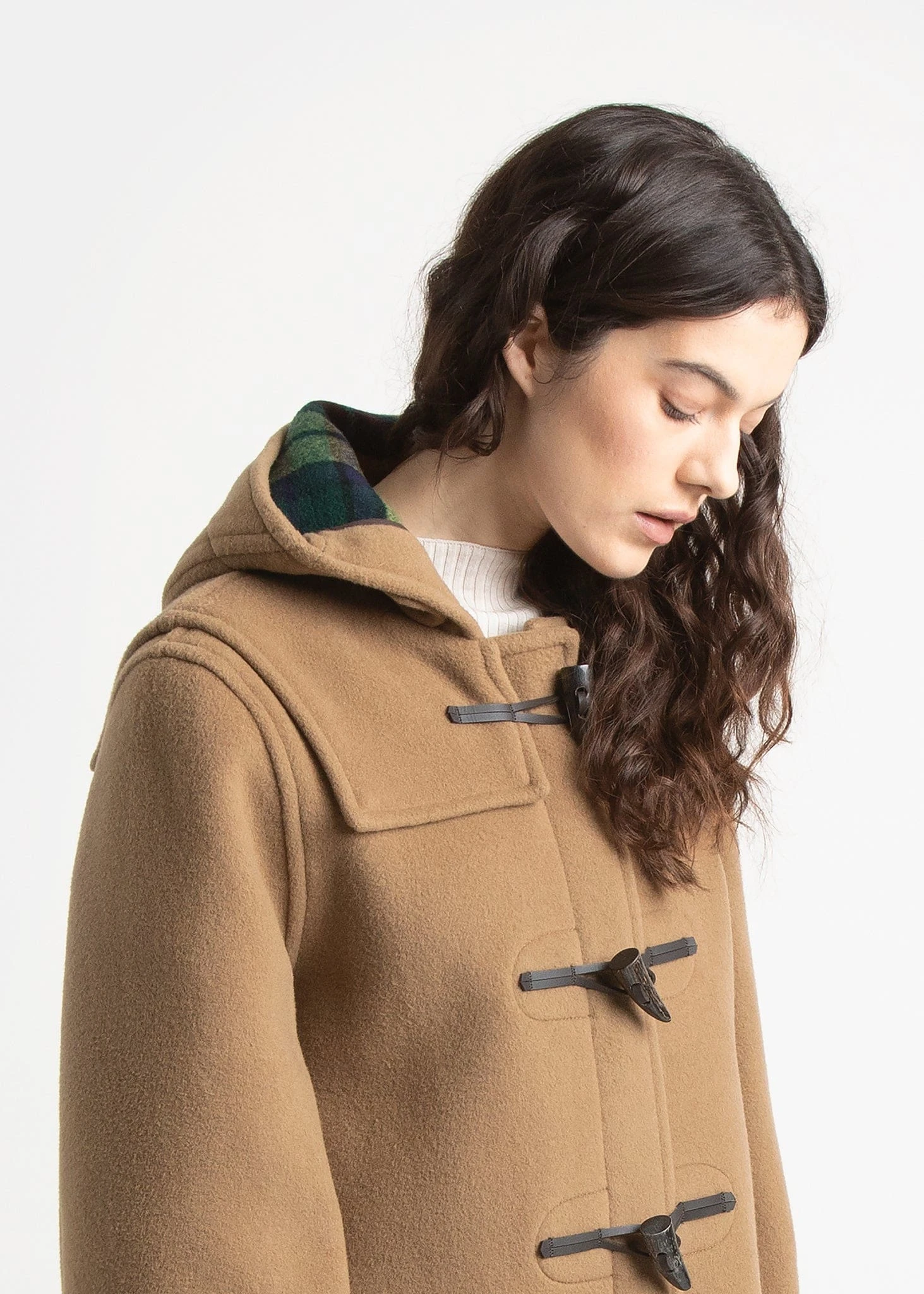 The women’s original duffle features the classic details of a fixed shoulder cape, detachable throat tab and pancake hood to offer protection from the cold.