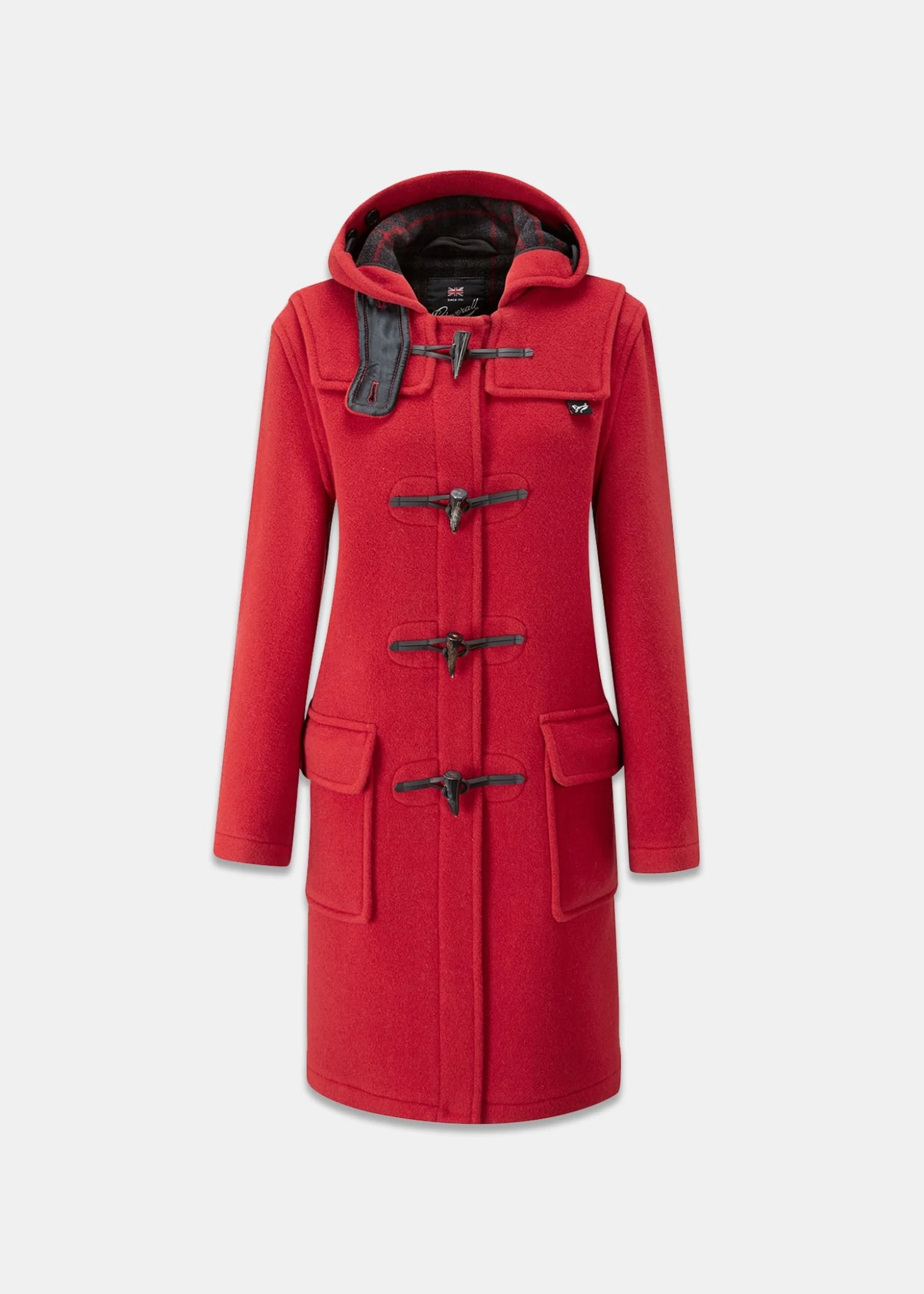 The women’s original duffle features the classic details of a fixed shoulder cape, detachable throat tab and pancake hood to offer protection from the cold.